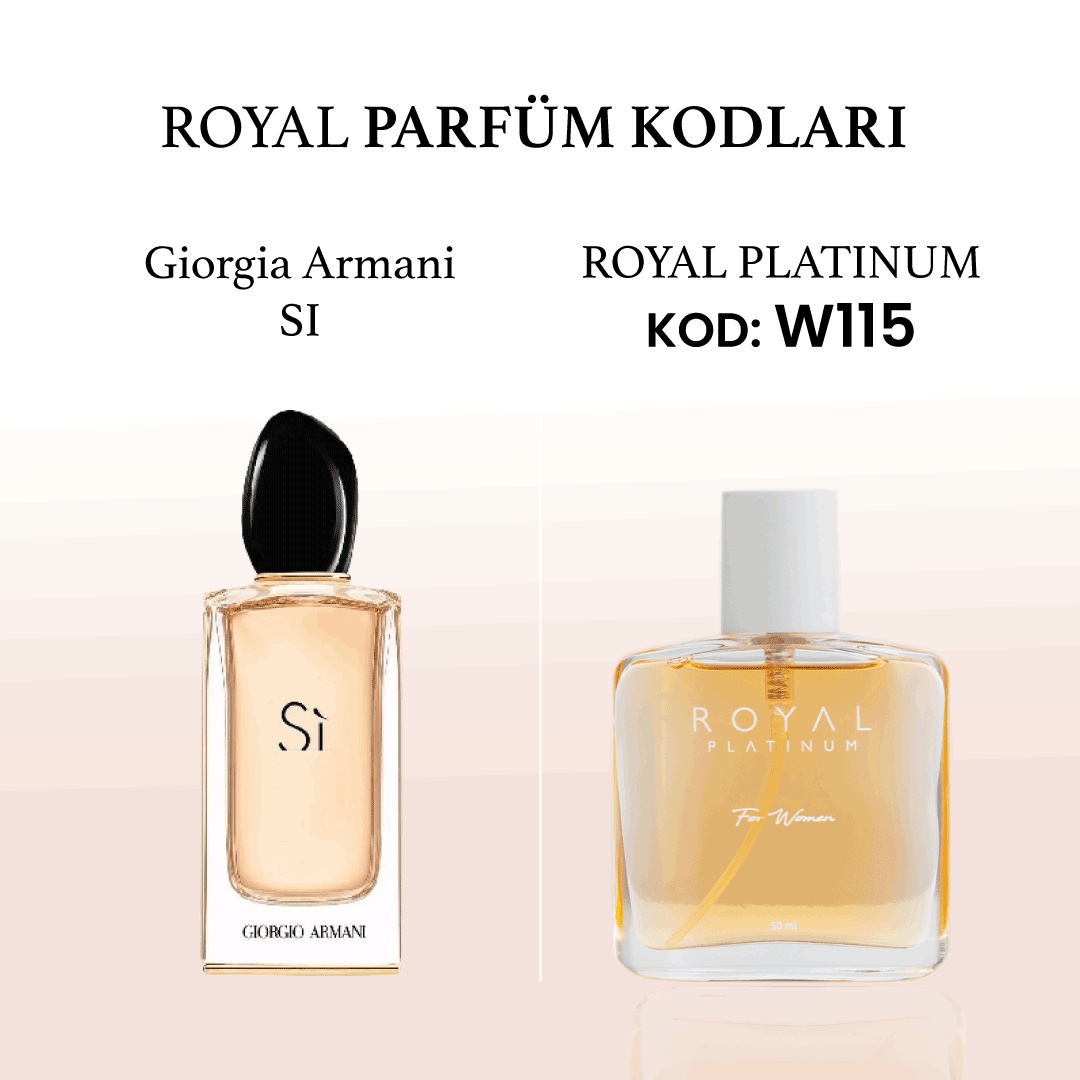 Royal Platinum W115, meyvemsi ve şekerli notaların zarif bir birleşimiyle tasarlanmış özel bir parfümdür. Eğer Armani Si parfümünü seviyorsanız, W115'in sunduğu kokuyu da beğeneceksiniz. Bu yazıda, W115 parfümünün özelliklerini ve Armani Si parfümüyle olan benzerliklerini inceleyeceğiz.